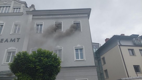 Beim Eintreffen drang dichter Rauch aus zwei Fenstern und die Jalousien begannen bereits zu schmelzen. Es wurde unverzüglich ein Innenangriff mit schweren Atemschutztrupps gestartet. Als der erste Trupp in den Serverraum vordrang, war der Brandherd aufgrund des Schrankes schwer zu lokalisieren. Der Raum war komplett verraucht. Mit der Wärmebildkamera wurde der Brandherd gefunden und es konnte ein gezielter Löschangriff gestartet werden. Parallel dazu wurde eine Belüftung durchgeführt, um den Raum rauchfrei zu bekommen.
