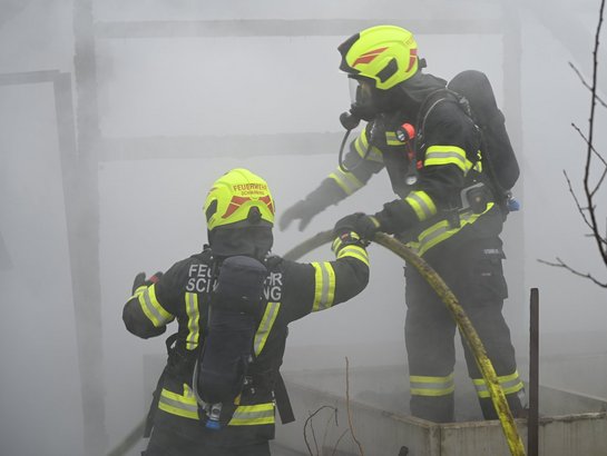 Im Inneren des Einfamilienhauses wurde eine starke Verrauchung festgestellt. Um die Sichtverhältnisse und die Sicherheit zu verbessern, wurde eine Abluftöffnung geschaffen, um den Rauch gezielt abzuleiten.