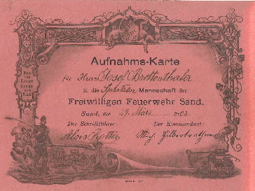 Erster Kommandant wurde Michael Hilbertratner. Er und die damaligen Gründungsmitglieder Brettenthaler, Domini, Sachsenhuber, Zeilermayr, Strasser, Lachner, Wild und Vögerl konnten bereits 34 Mann vereinen.